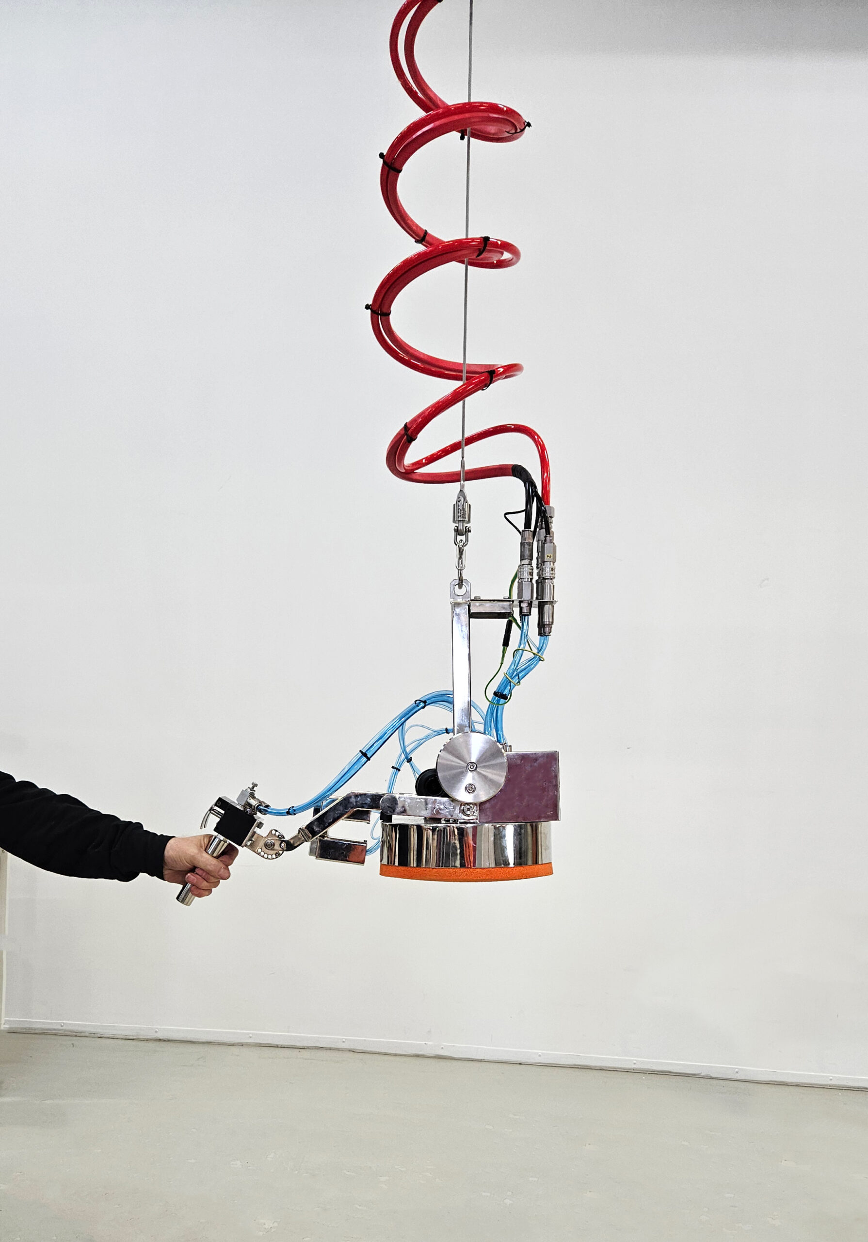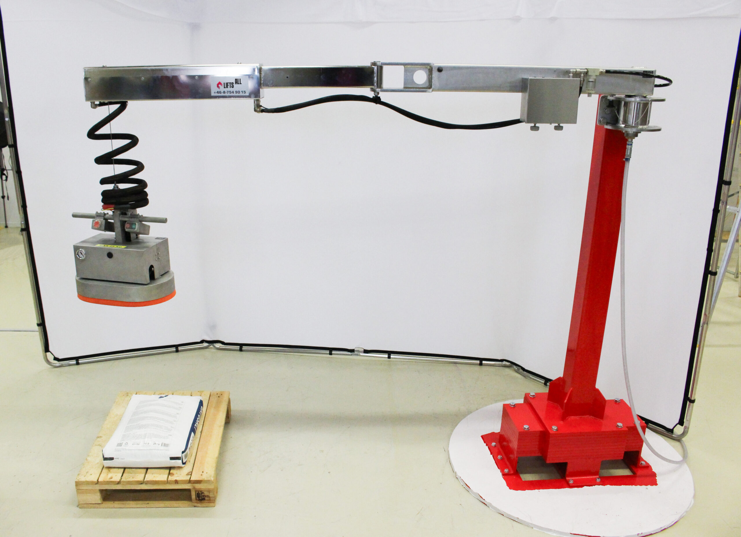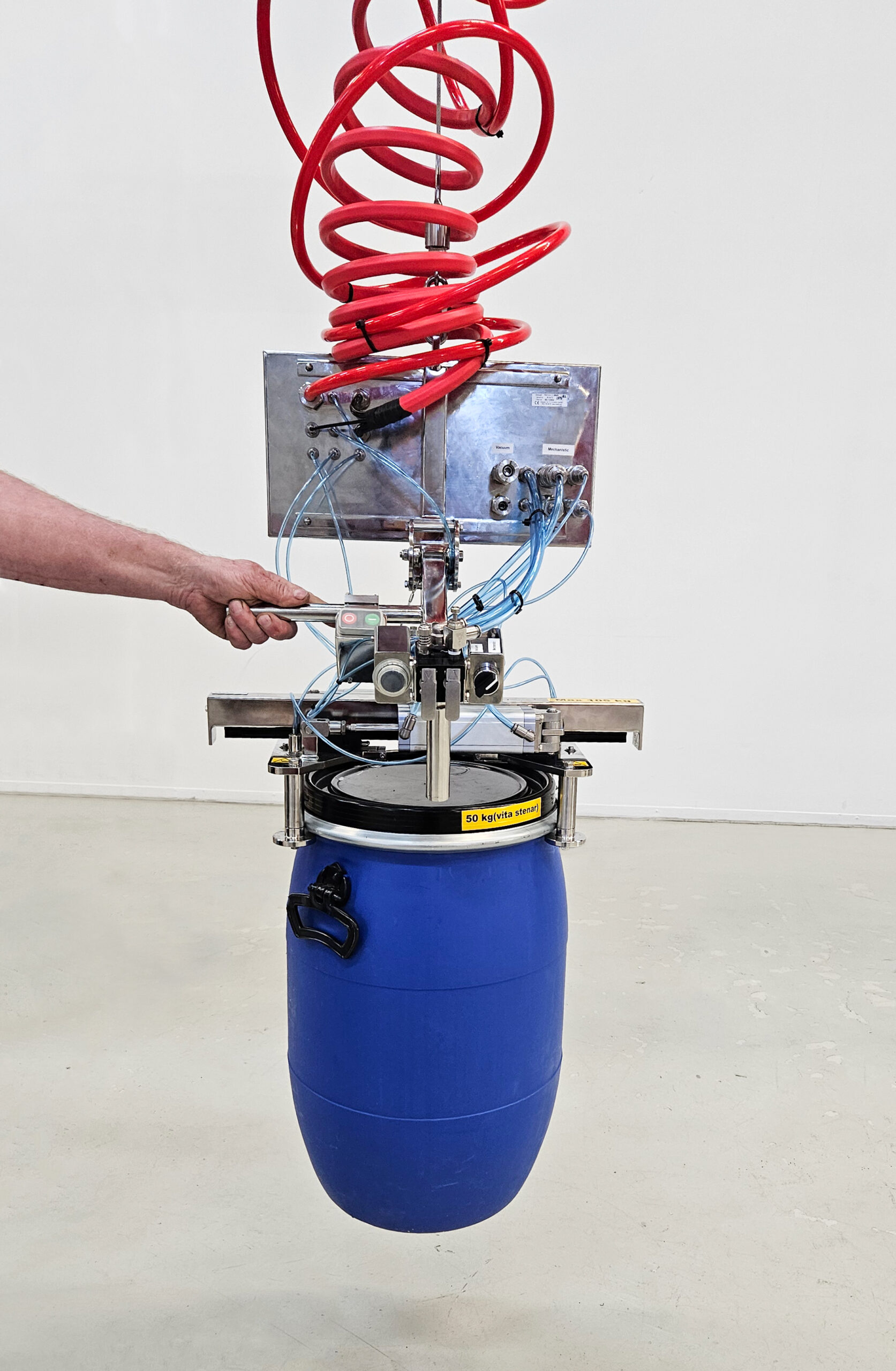 Perfect for lifting flat or airtight items such as boxes, plastic drums, bags, or sacks containing sensitive contents. The pneumatic system can be designed to lead the air out of the cleanroom.